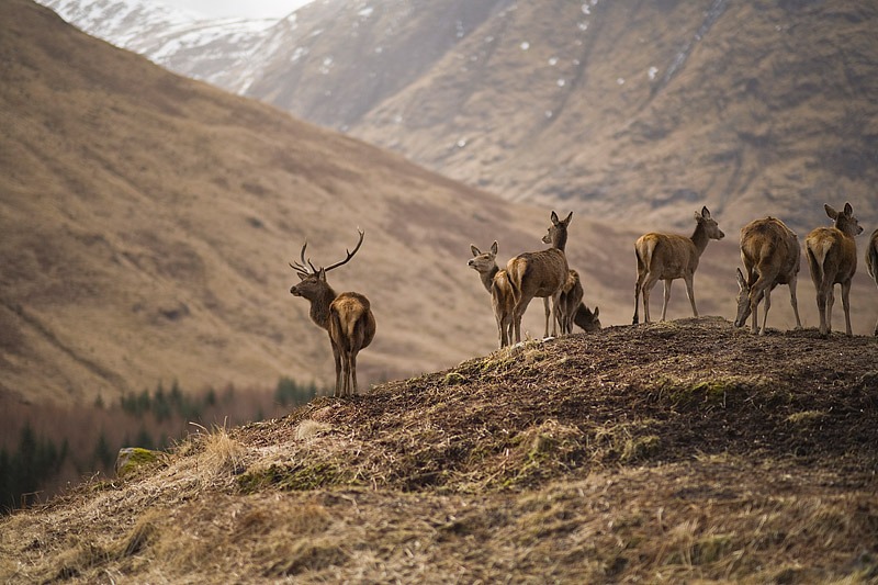 Deer, Glen Etive The photo was taken during my weekend photography trip to Highlands in 2010 in Glen Etive on the road to Loch Etive where a group of deer suddenly blocked the road. We had no choice but to take pictures of them.