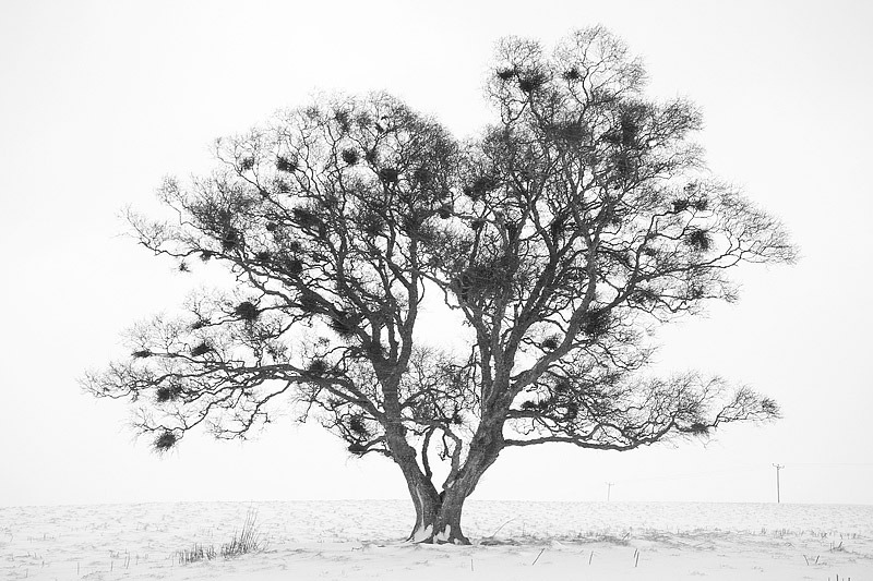 Alone in Winter It had been snowing heavily for a few days and all the roads were blocked with snowdrifts. There was finally a break in the weather so I set out on foot to the top of the hill where I had previously spotted this tree. When I got there the weather had turned again so I had to quickly get my photograph and head back.