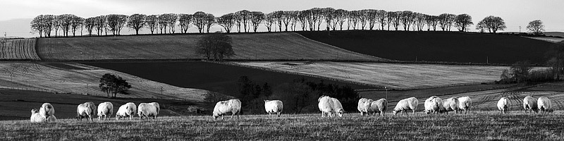 Choreographed Grazing It was pure luck that I only managed to see the symmetry in this photo at the very last minute. I had been walking down a very icy country road trying not to let it get the better of me and finally stopped for a rest only to see this neat set up unfold in front of me as the sheep gradually moved along their grazing path.